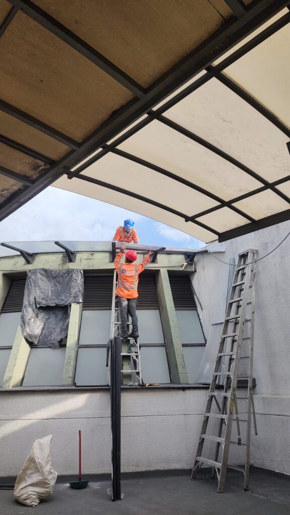 Renovación Integral: Soporte Metálico, Cubierta Alveolar y Vidrios Opalizados- Pereira Risaralda